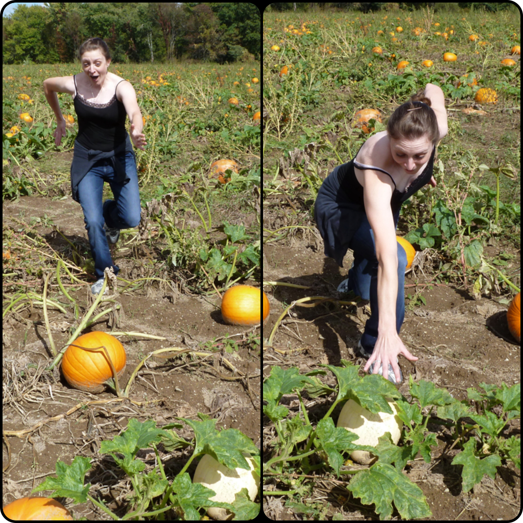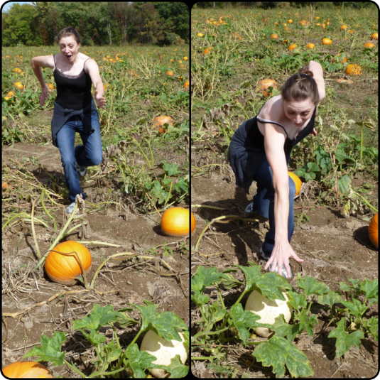 I then went on to tell K to pick up a really heavy pumpkin. No joke, it was heavy.