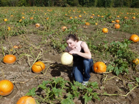 I was overjoyed when in a field of orange I found my sought-after albino pumpkin (note: I have no idea of that is the correct name for these white pumpkins, but that is what I call them).