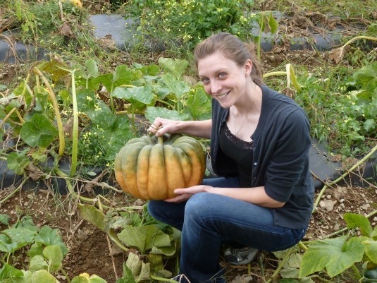 And then, after a sip of water (or gallon in K’s case), we went to explore the farm (not really sure if we were actually allowed to do such, but, ohh well.) We came across a different type of pumpkin, which excited me enough to run and attempt to pick up thirty (plus) pound gourds.
