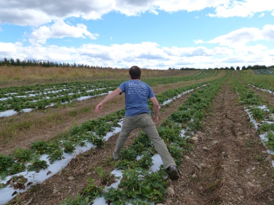 After prancing in the pumpkin field, I spotted small red objects, thinking, are those strawberries? In September?