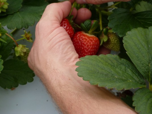 So what if he might grow a sixth finger in a month from eating these (probably) over-sprayed pesticide drenched strawberries?