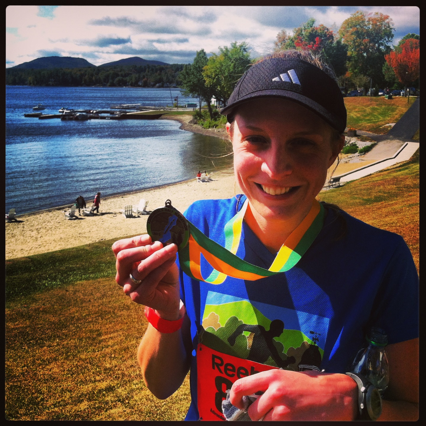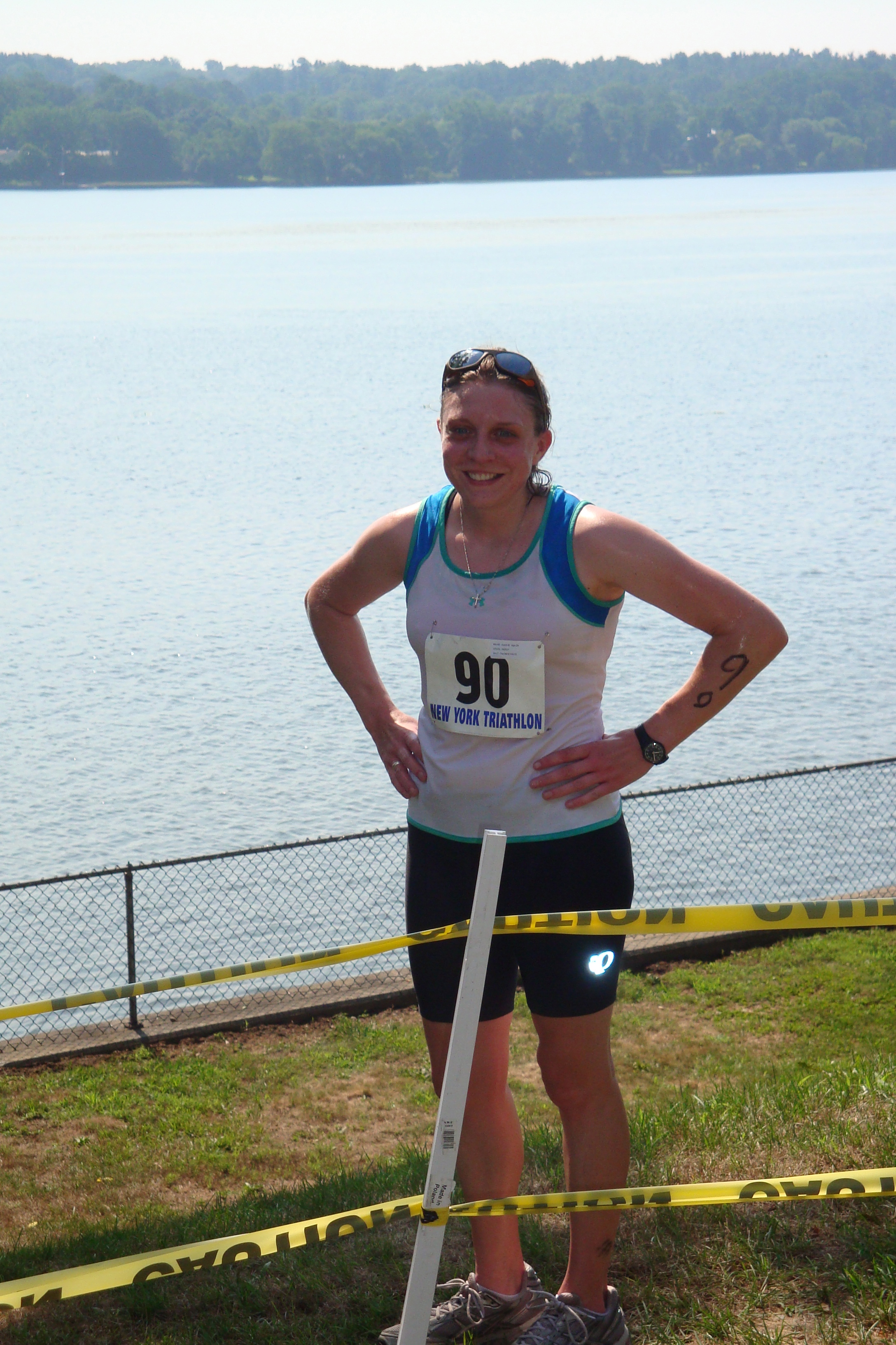 I do not know what brought the tears on. Maybe it was the fact I finished my first olympic distance race quicker than I thought I would. Maybe it was the fact that I finished, but had no one I knew there to give a sweaty, exhausted, thrilled-that-I-finished hug to.** Maybe it was because I finished my last duathlon of the season, and managed to pull off second overall in the Women’s duathlon. Who knows. I did have to pull some major self-control in order to keep the tears from continuing to stream down my face. You ever try to stop yourself from crying in public when your body is exhausted? It’s really hard to do, and I kept trying to cough in order to hide the fact I was crying, and then choked, which wasn’t helpful. Lake Taghkanic State Park has a paved sidewalk along the beach near the parking lot which was perfect for cooling down and gaining composure.