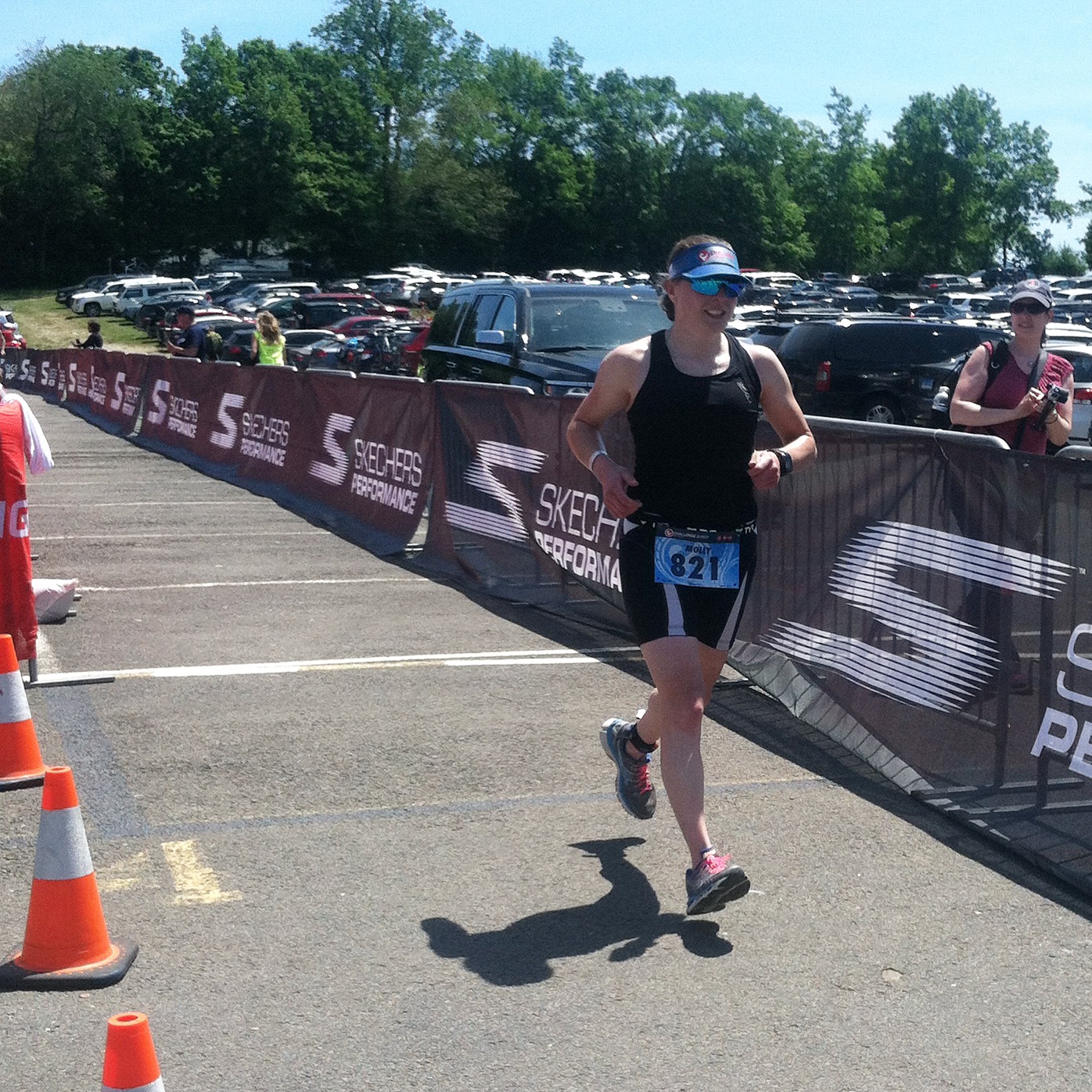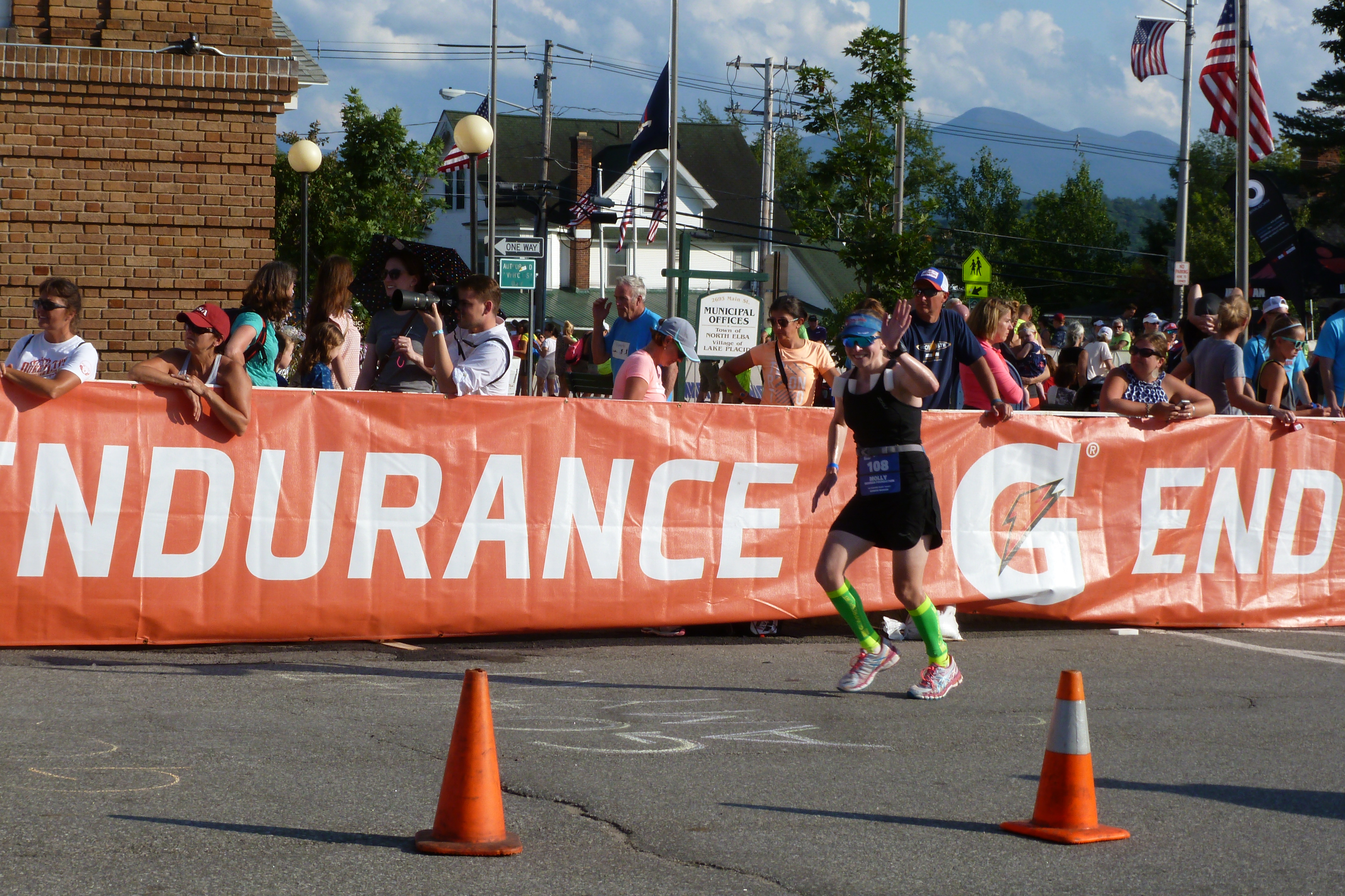 Just like arriving back into town on the bike, leaving the town of Lake Placid was amazing. There were people everywhere cheering for you as you ran. I heard a lot of “Go Molly!!!!! You can do it!” and then I heard a lot of “Go Holly, Go!” which made me chuckle to myself. Heck, I’ll take anyone cheering a name that rhymes with my real one! Since I had not eaten as much on the second loop of the bike I worked on eating the honey stinger. The last time I had run a marathon was two years ago on my 27th birthday. I had no idea how this run would go; the longest training run I had during my training was 14 miles (oops) so I just decided to jog to each aid station, walk through the aid station, then jog again. I had no idea what time of day it was. I just knew that I finished the ride in 7 1/2 hrs, and the swim in under 1 1/2 hours, so that meant I had 7 hours left to complete the marathon.