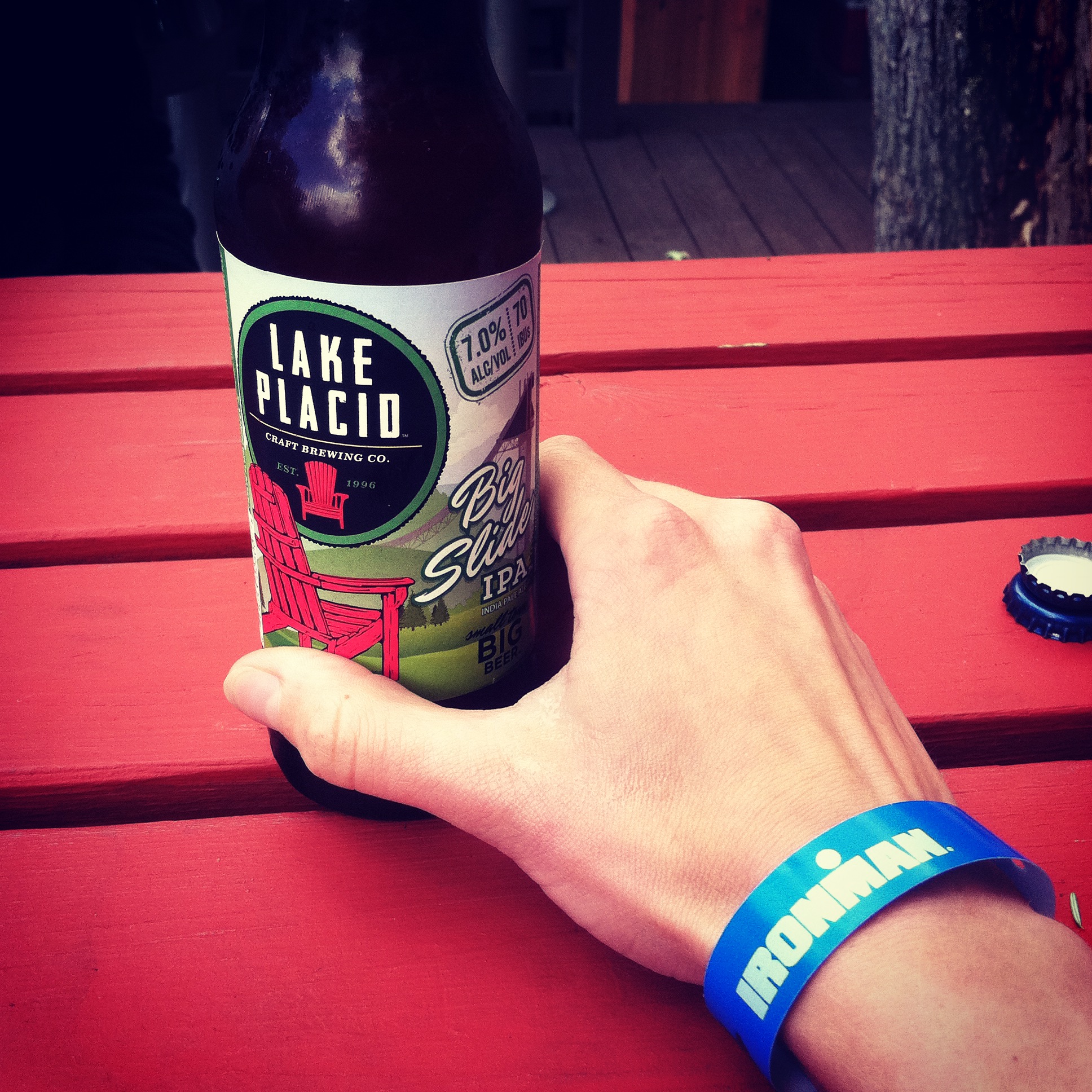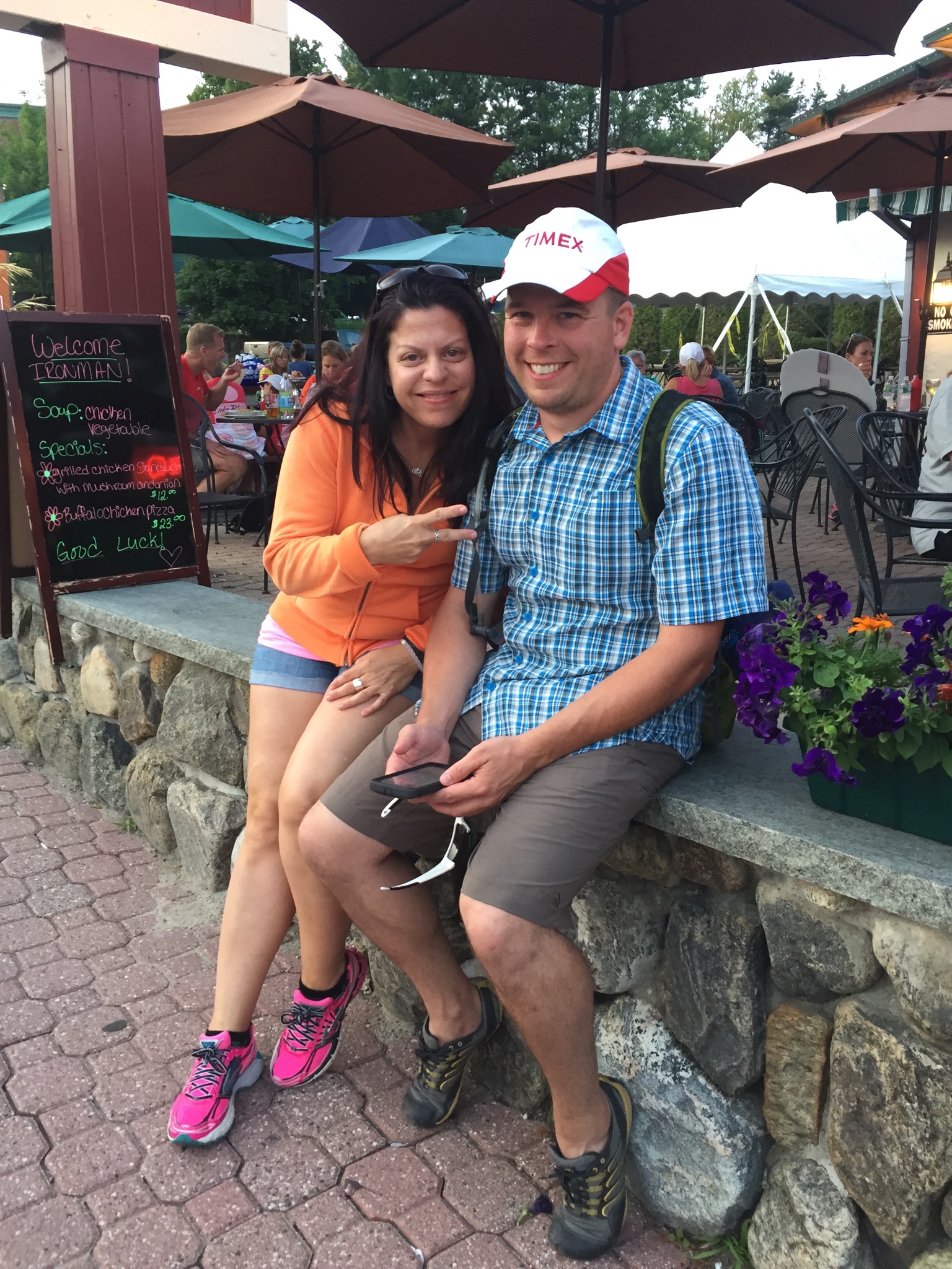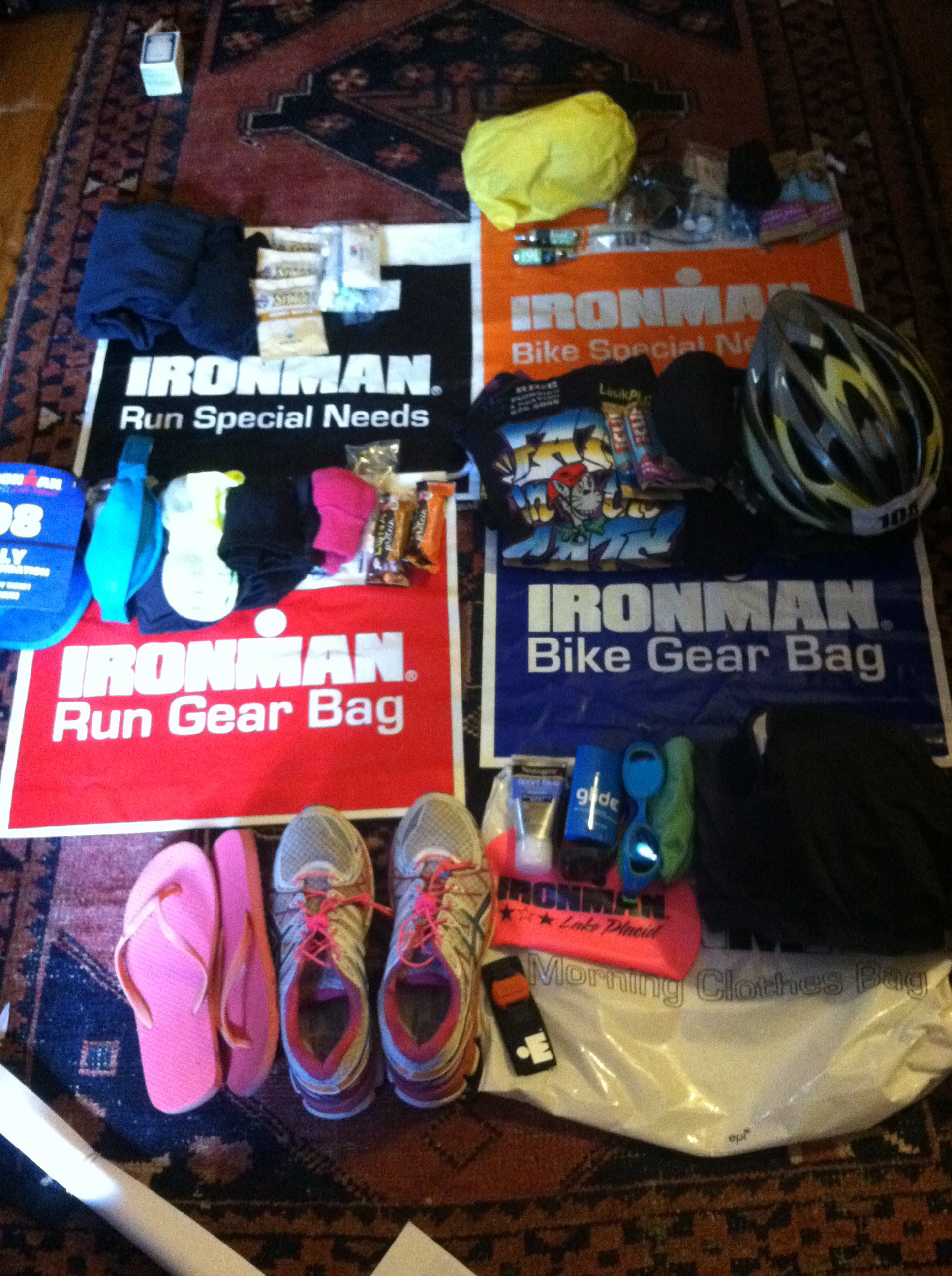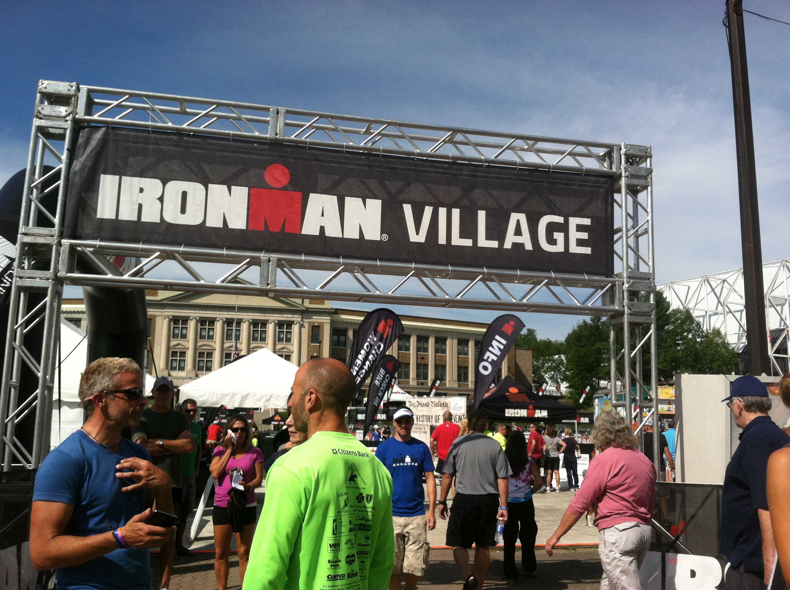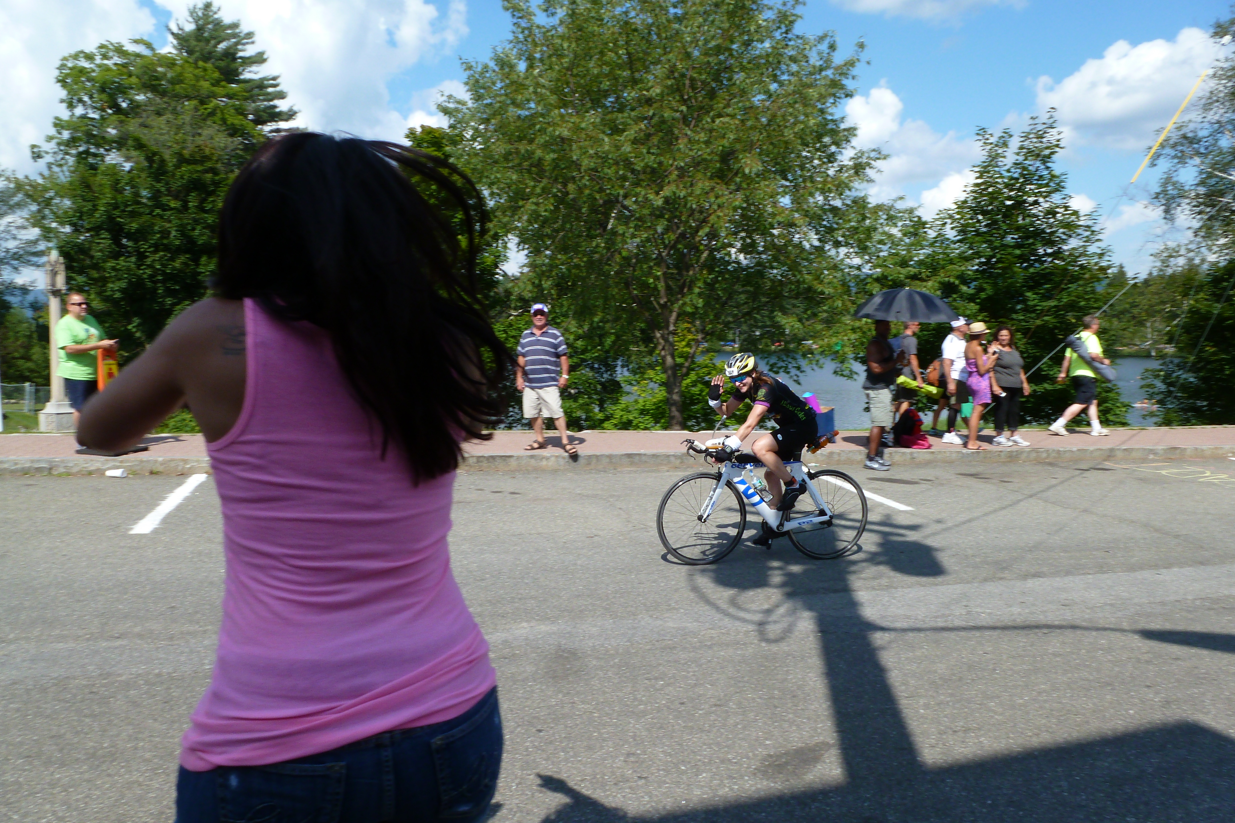 I jogged up the hill in Lake Placid to Mirror Lake Drive (where the run special needs bags were), along the way I glanced through the crowds to find those familiar faces. Finally, I saw everyone which made me extremely happy.