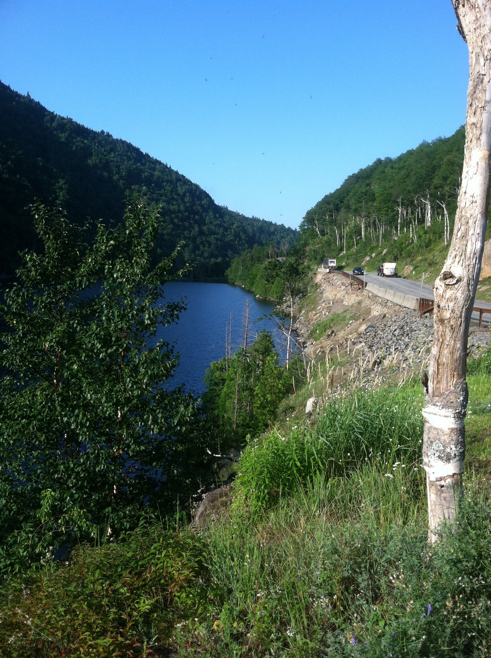 The first three miles out of town to the ski jumps was mostly downhill, which was quite nice. I kept my pace easy– I didn’t want to get tired out too quickly– and just kind of ran along. I knew I had a friend, Bev, volunteering down at the ski jumps, which gave me something to look forward to.