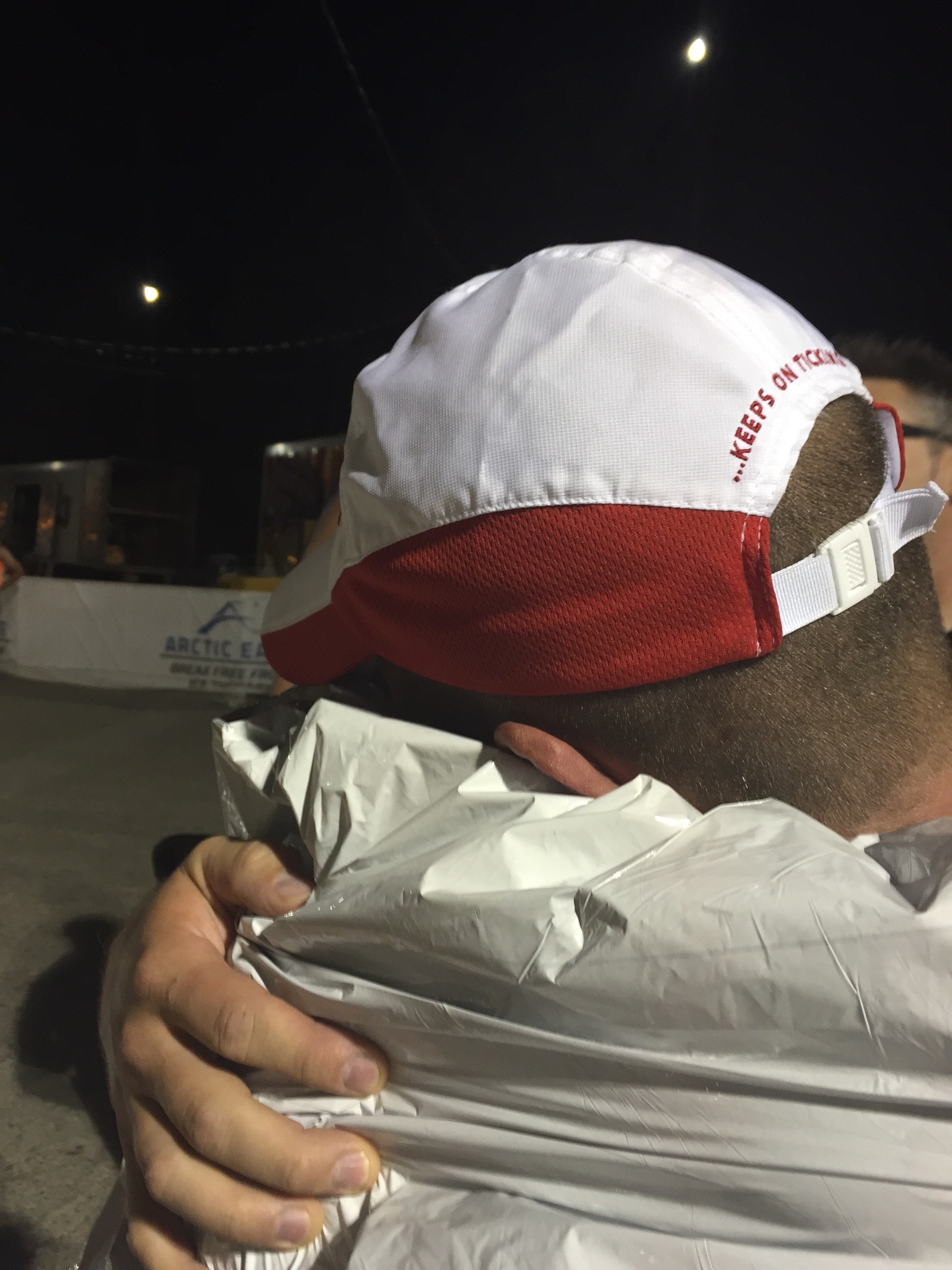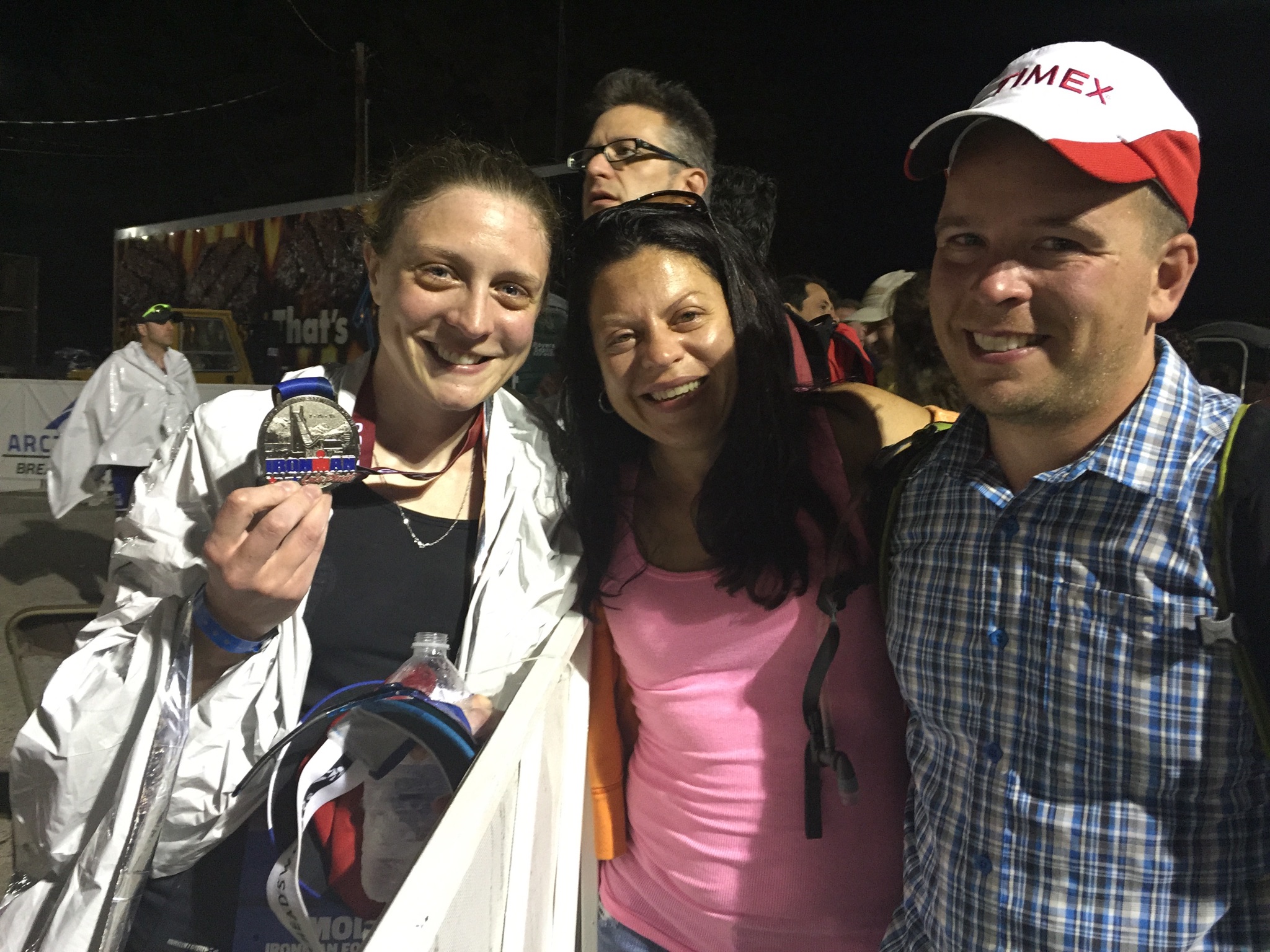A volunteer took me in is arms and another gave me a bottle of water. Then, someone placed the finishers medal around my head. Everyone congratulated me, and the volunteers were amazing. They stayed with me, to make sure everything was okay. After I took the finishers photo, another volunteer gave me a thermal blanket and asked me if I wanted anything to eat.