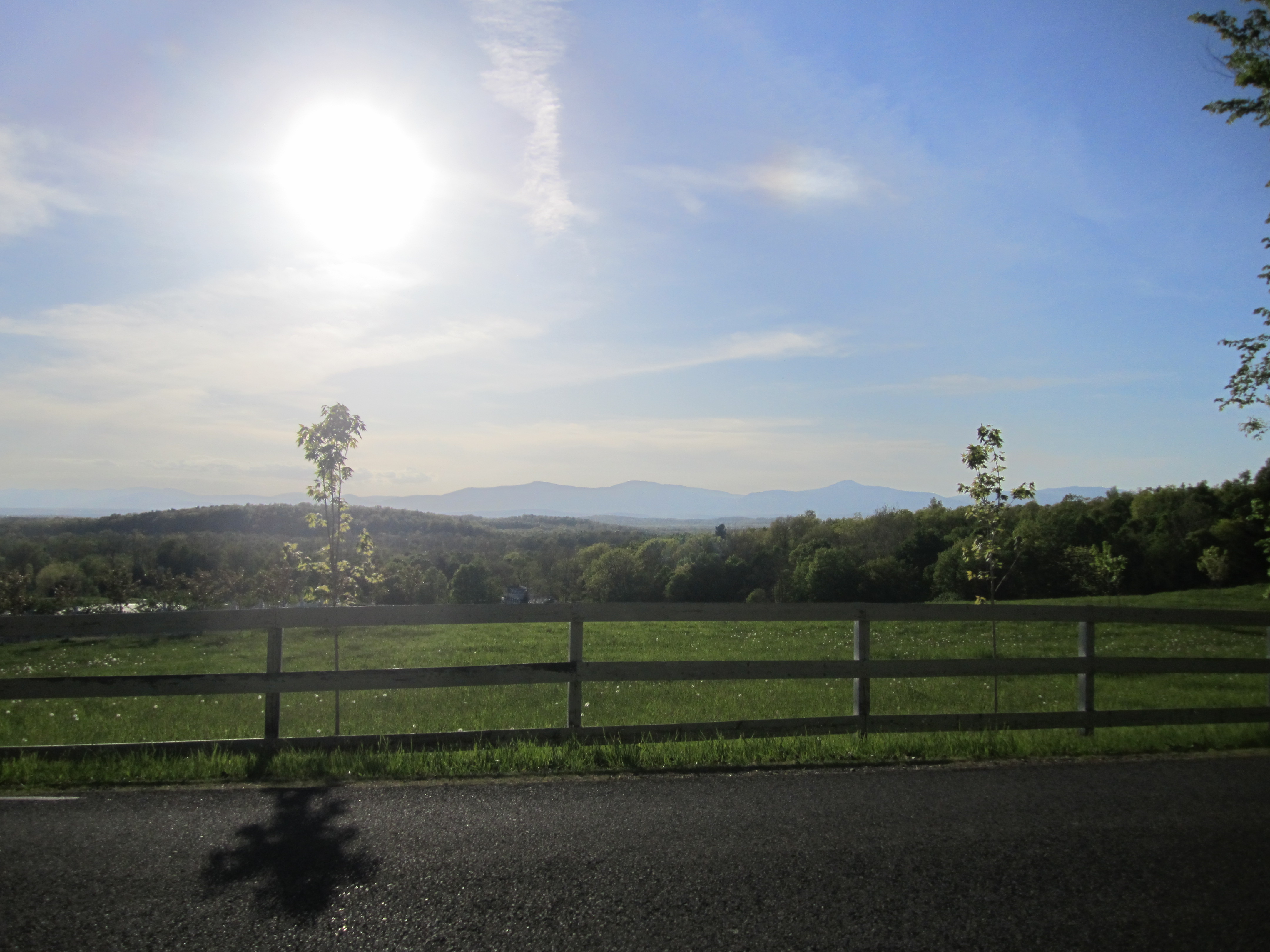 view from river road of sun setting,with the Catskills in the back ground