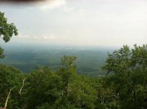 Closer to the edge, there were chairs made out of slate and stone that overlooked the hudson valley, and from there I could see how far I had run from the fire tower at the top of the fire tower.
