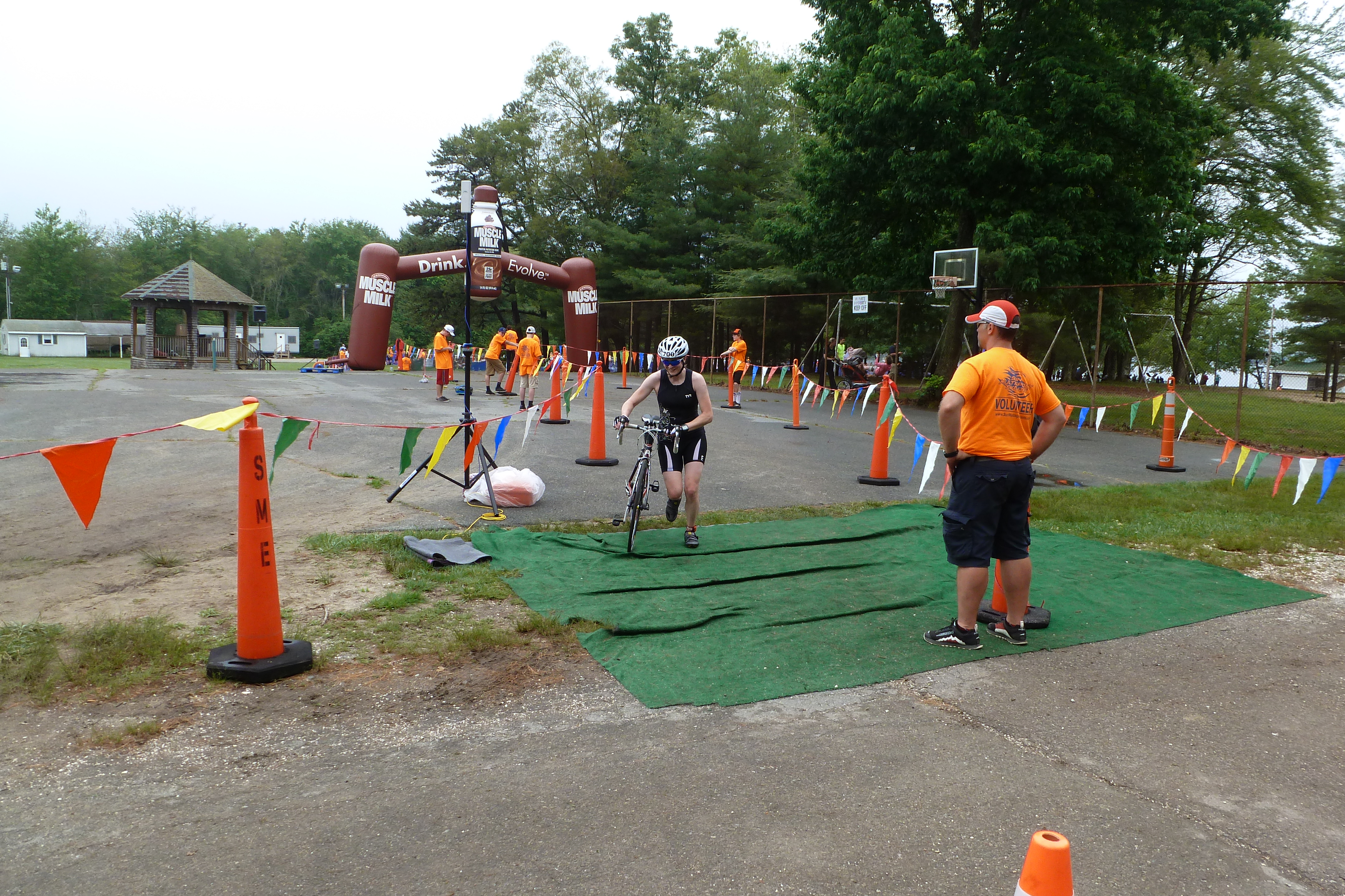 I must admit, I felt really good on the bike. Despite my LSD training rides being no longer than 52miles, I finished the 56 miles faster than my goal time. I think all the hills around where I live really helped me physically, and the fact the race course was basically flat was awesome. I made sure to try to eat my GU chews as I practiced on my training rides, every hour, and hydrate. Racing on an overcast day helped as I didn’t have the sun beating down on me like Mooseman. I guess nutrition has a big part to play during a race. When I finished the bike portion, I thought, “I’ve got this.” Mooseman I didn’t make the cut off limit for the bike. And with this race, I had plenty of time to finish the run portion. I decided I now needed to use a quick stop at the porta john on the way out.