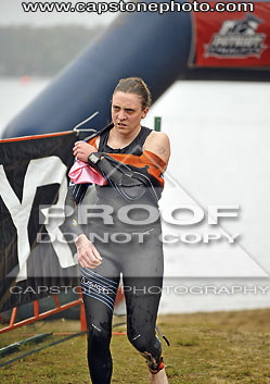 As I mentioned in my last post, I believe I could use some more training in the water if I ever want to do another triathlon again. I think I added more distance by swimming away and then back towards the buoys. I was five minutes slower than my goal time in the water, and yet felt breathless jogging up to transition. Official race pictures show an angry Molly.