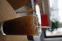 After adding just enough soy milk to raise the coffee to the brim of the plastic cup, swirling the liquid with my straw, I took it and went outside to sit on the curb (I would have sat inside in some air conditioning, but was afraid someone would steal my bike) and enjoy my “emergency” beverage for a few minutes.